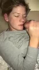 Светловолосая сучка спит как убитая - даже не реагируя на солнечный свет, который обычно заставляет людей пробуждаться. А хуй-то стоит, и его никуда не деть, так что надо скорей решать вопрос. Но ничего страшного - можно воспользоваться секретным приемом и возбудить девчонку, просто помассировав ей грудь, одновременно пытаясь запихать стояк в рот. И о чудо - рефлексы сработали как надо, ротик приоткрылся, и теперь можно начинать ее туда шпилить. Хоть она еще и сонная, но это не помешало обкончать ей лицо - главное, чтобы опять не уснула и постель не засрала.